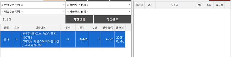 매장을 구역(야채, 청과 등등)별로 나누어 관리할 수 있으며, 각 구역에 해당하는 제품만 출력하여 포장이 더욱 편리해집니다.